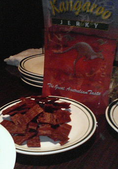 ○○を祝う会 travel&food 2006年10月10日 土曜日はLFで飲み会を行いました。場所はユニバーサルダイニング。初めて行きました☆混んでて予約が取れず結構な遅い時間設定でしたが、私は仕事が終わってからでしたので残業入れましたし好都合でしたがね。北上は降っていなかったので傘を持っていなかったら盛岡はやや小雨。雨の中をパタパタと駅から大通まで走る。(途中で疲れて挫折したけど)開運橋端に折れた傘が散乱。この傘を片付けられる勇気はないけど、壊れたからそこに置いてくのは違うだろうとは思うのですが…。なんとか約束の時間にお店に到着。混み合っております。個室に案内されると既にそらちゃん、カナ、おお先生が到着済み。個室内を探索したり、お土産を開ける訳ですが、カナさん要望の「カンガルージャーキー」がホントに登場しました。取り皿に開ける(持ち込み失礼)たけちゃんも到着し、宴会開始。乾杯の音頭をたけちゃんが指名されたはずが、見事におお先生にその座を奪われ、且つメインは就職祝い会に変更されていました。さすが、おお先生あってのLFは4周年を迎えました…。ジャズフェスが終わっての1ヶ月は各個人的な休養期間になり、皆様色々とお出掛けしていた模様。上記カンガルージャーキーを初め、お土産も頂きました。飲み放題で「一人1品以上は注文」との事でしたが、頼んでものが来たら消費という繰り返し。店員が持ってきて、次来た時に皿を持ち帰るって余り見る光景ではございません。最後まで頼み続けるも時間一杯で終了。本当は別件のグループ写真を撮る予定だったが、顔が赤くなった方が居たので今回はなし。店を出た処で次の予定を決め、さっさと解散致しました。その後は途中まで少し歩き、タクシーを捉まえた後はそらちゃんちへ。今回もまたまた泊めて頂き、しかも既に布団が敷いてあるという感無量。飲食時間が遅かったので就寝時間に悩んだものの、時間が経つのは早いもので、話し込んでいる内に食べ終わってから3時間以上が経過していたらしい。なかなか良い夜でございました。尚、今宵の流行語大賞は「Sodium」です。連呼した挙句にgoogleまでされちゃいました。