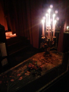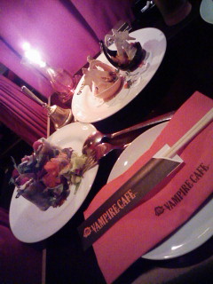 銀座 travel&food 2010年03月24日 一日目続き。おでん缶を買ってから銀座に移動。山野楽器で楽譜を探す。ka7さんがアバクロに行ったらというので店を探す。なんだか香水の匂いが。どこからだと思ったら店から…上(看板)を見たらアバクロって書いてある!ここか。中に入ったら話に聞いた通り上半身裸の男性が居て、確かに店員が踊っていた。夕食はコンセプトレストラン「vampire cafe」へ。黒と赤を基調とした内装で、部屋の中央には棺と燭台。vampireさんも普通に接客していた(笑)執事さんが素敵であった。食事も美味しかったし雰囲気にも満足。帰りにvampireさんと写真を撮り、見送ってもらった。食べ過ぎたので高くついたけど、銀座とか置いといてもそんなに高くないとは思う…面白かったから今度はみんなで。ヘロヘロとホテルに戻り就寝。ところでホテルのトイレと風呂がガラス張りなのは如何だろう?