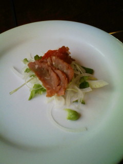 いわて短角牛 travel&food 2010年02月27日 2月21日の日中土曜の移動中の話。金曜にka7さんが職場の講演で食関係の話を聞いてきたそうで、いわて短角牛は安全で且つ美味しいという事で、その話を聞いている内に「そんなに美味しいというなら食べてみたい」という事でランチに行く事に。扱っている店でやってるところ~と調べて、パイオニア牧場に行ってきた。ちょうどマシェリに載ったとかでお客さんが多く、明らかに手が回ってない感じ。高いからと中途半端にハンバーグとか食べてなんだかわからなくてもと思い、がっつりサーロインとフィレのステーキをセットで頼んだ。サラダと牛刺し、スープ、肉、デザートとコーヒー…全体の値段は高いけど、確かに美味しかった。大満足!!忙しいせいか、肉の量が多く来たり(間違えて切っちゃったらしい)思いがけないサービスが(^^;肉そのものについてはサーロインの方が脂が少なくあっさり目?これは意外だった…。とても贅沢したけど後悔はしない。