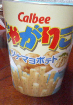 限定品 travel&food 2006年10月10日 昔から限定品に弱く、無駄にものを買ってくるタイプではございますが、じゃがりこも限定品が結構あるようですね。今回の限定品はじゃがりこ「ツナマヨポテト」味。ファミマ限定なそうで、その通り、ローソンにはございませんでした(笑)味の方は普通のじゃがりこ(サラダ味)と比べるとマヨネーズの分なのかまろやかな感じ。個人的にはさほど「ツナマヨ」という感じも受けませんでしたけどね。よくわからなかったから、もう1回食べてみようかしら?
