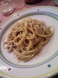 イルクォーレ travel&food 2010年02月01日 イルクォーレ花巻市松園町妹夫妻がご馳走してくれるという事で行ってきましたイタリアンのお店。3,150円のコースは前菜、スープorパスタ、パン、メイン(魚or肉or+300円でステーキ)、デザート・飲み物。パスタもメイン料理も選べるのでその時の気分で決められます。ボリュームもこれぐらいで十分、デートにもよい感じかと。※ただ、1度行った事のある2人によれば、メニューによって奇抜・斬新なものもあるようなので注意が必要?パフェもアイスやソースが選べるようで食べてみたいと思いました。いやぁ、ビールにワインといっぱい飲ませて頂きましたわぁ。 PR