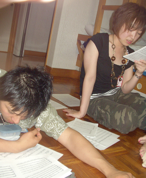 秋田・岩手交流会② travel&food 2006年08月07日 交流会記事の続きである。満腹限界で飲食を休止。コミュニケーションを求めふらふら渡り歩く事終始だった。グループ「アプリ」は集合できる期日を確保出来ない為、深夜より練習を開始。終了後は人にくっついて行ったり夜中中ウロウロと歩いていたりしたが、その割には起きている部屋に勝手に寝床を確保して就寝と相成る。9時チェックアウトに対し気づいたのは8時半だった。驚き焦るが1時間の有余を頂く。片付けも手伝えず成り行きで解散、某施設を後にした。練習に励むアプリメンバー