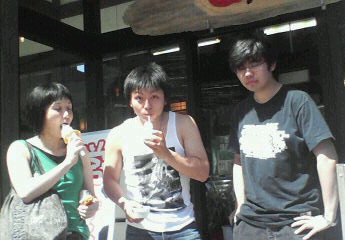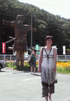 秋田・岩手交流会③ travel&food 2006年08月07日 交流会記事の続き(帰路)である。朝食をとる為横手市街へ。モスに入店、遅い朝食となる。107号を湯田へ向かい、癒しの旅として「砂ゆっこ」で汗を流す事にする。15分間の砂風呂により約2キロ体重減。ぐるりと回り到着したのは湯田牛乳の特売所「結ハウス」。とんでもない厄除けの人形が立っている事でも有名な場所。余りにも精巧な作りに感嘆。ソフトクリームを食し、冷たさと甘さを堪能した。岩手大学ソフトクリーム某厄除け人形を遠目に