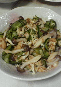 きゅうりとしめじを和える travel&food 2006年08月12日 昨日は仕事が早く終わった為、寄り道少なく帰宅する。母が仕事で、さて夕飯をどうするかと。ほっとくと父が餓えるので、何か作る訳で、久々の創作活動。冷蔵庫確認。賞味期限の危険なものを救出。言えない位過ぎてるものを大丈夫かと聞いたら大丈夫だってゆーので使う事にする。内、1品。 作業手順